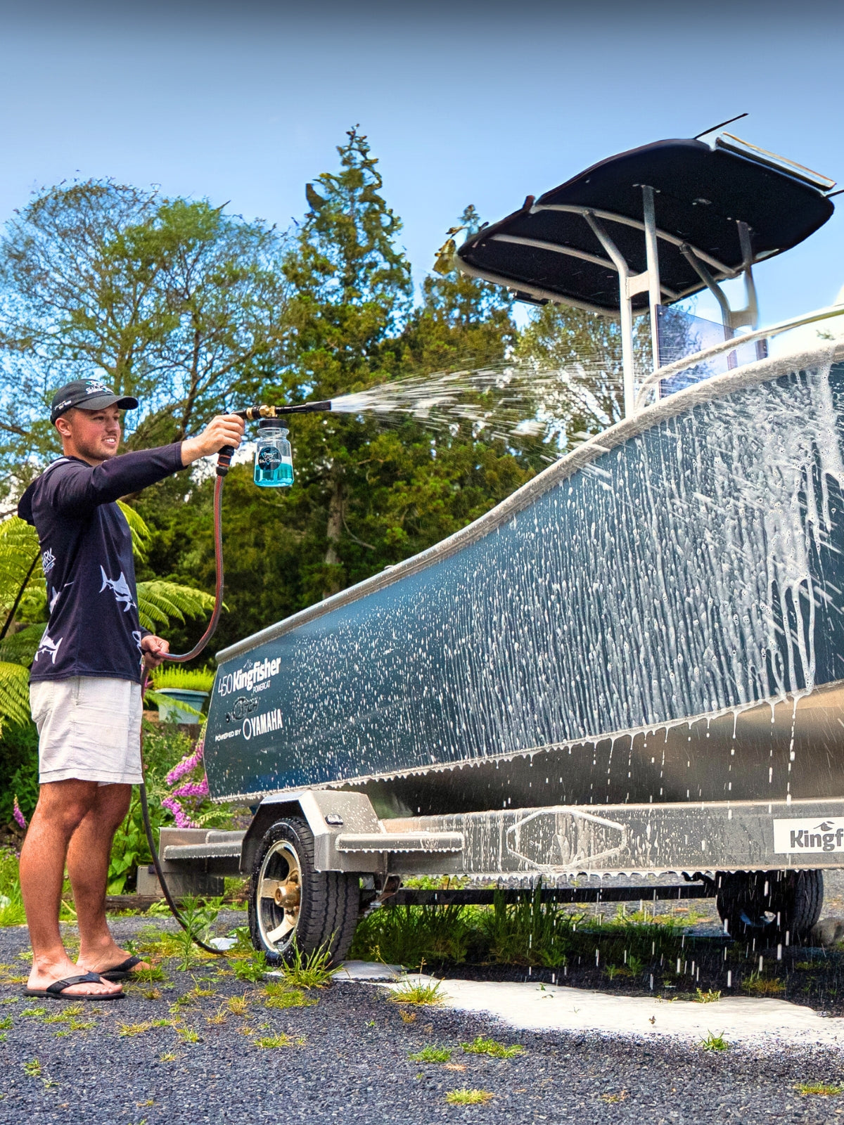 Have tried your product on my 8mtr boat with a hose mixer, was truly amazed at the end result after a long days fishing with salt spray everywhere, hardly any scrubbing, foam/soap every surface followed by easy rinse off which left boat looking fresh and shiny, but best of all there were no streaks on the glass or paint work which usually needs a wipe when dry, used one and a half pumps of product ( less than 60 mls) into my mixer bottle and easily cleaned the boat, trailer and fishing gear, will save money on future washes 🏅